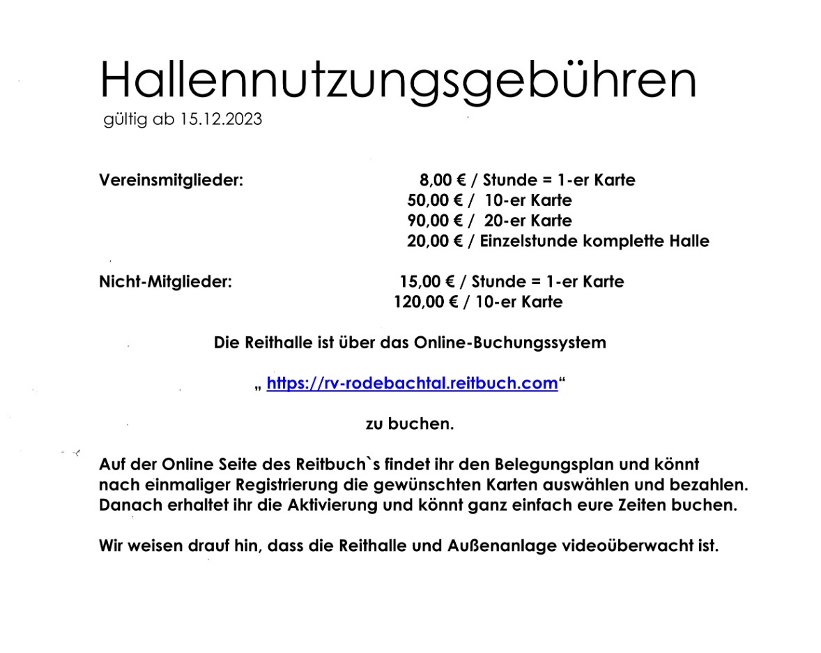 Reithallenbelegung jetzt online unter https://rv-rodebachtal.reitbuch.com