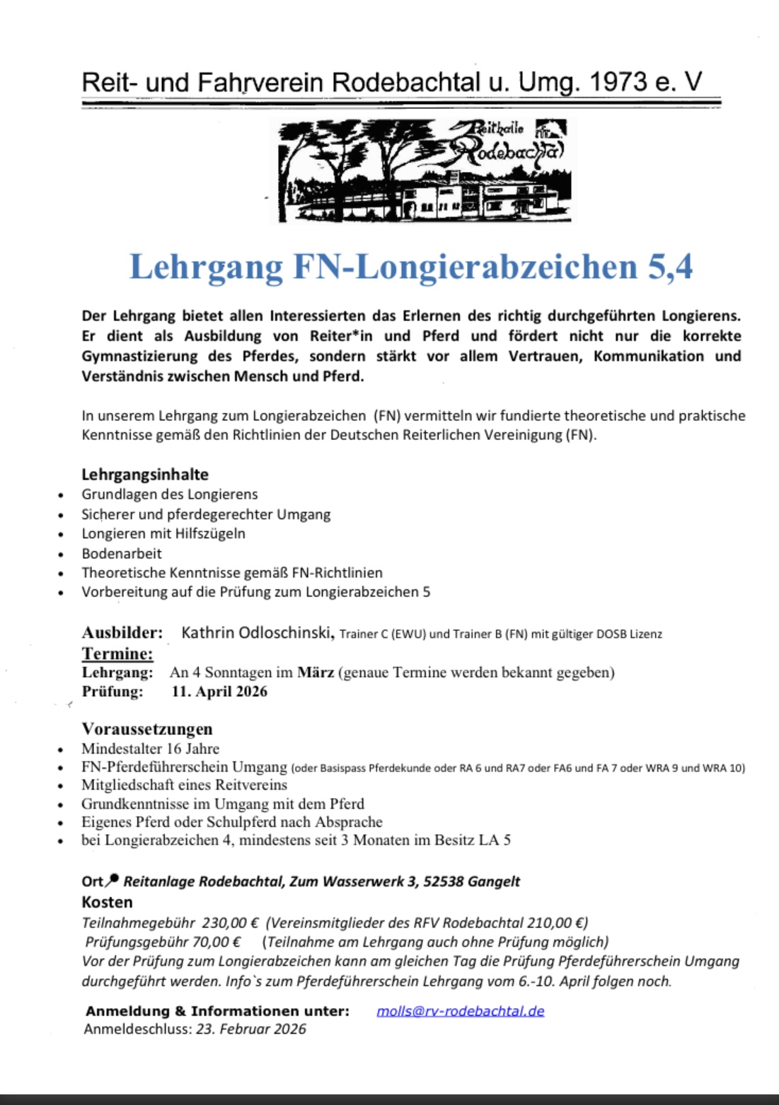 An den folgenden Sonntagen im März findet der Lehrgang statt: 1.3., 15.3., 22.3., und Freitags 27.3.26