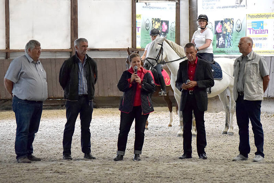 Viele Besucher hatten die Gelegenheit wahrgenommen am Sonntag mit uns gemeinsam die offizielle Eröffnung der Reitschule zu feiern. Gerne nutzen wir die Möglichkeit uns nochmals herzlich bei Herrn Bürgermeister Bernhard Tholen zu bedanken, dass er die Schirmherrschaft für die Veranstaltung übernommen und die offizielle Eröffnung der Reitschule vorgenommen hat. Bei herrlichsten Sonnenschein konnten die Dressur- und Springquadrille vorgeführt werden.Für kleine Besucher gab es die Gelegenheit zum Ponyreiten.